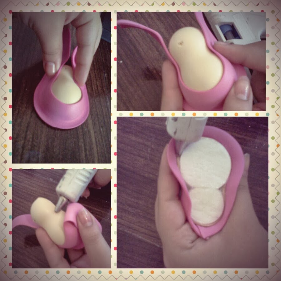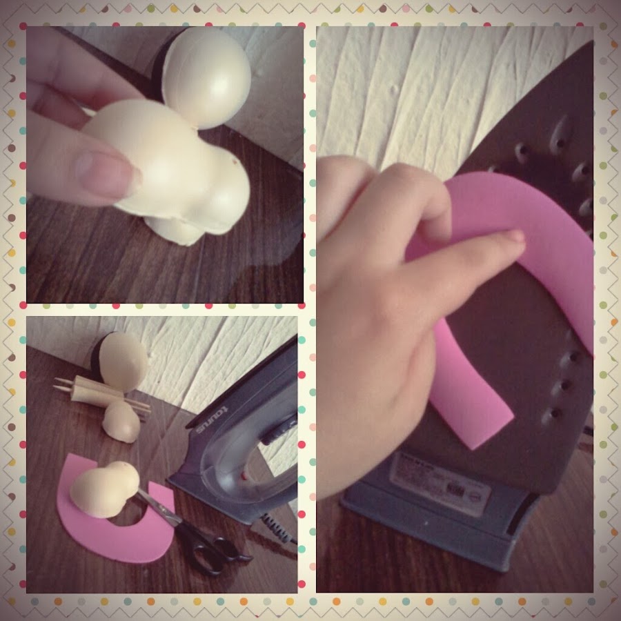 corta la punta,pasa calor con la plancha y de inmediato la metes por la parte de arriba de la fofucha dandole forma...