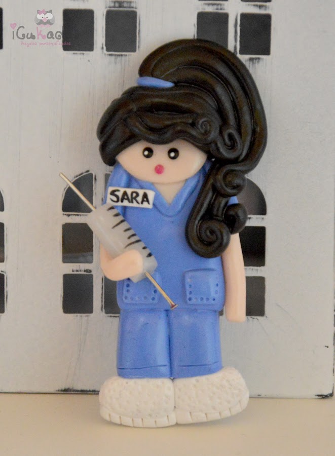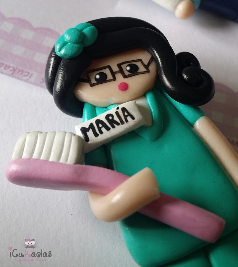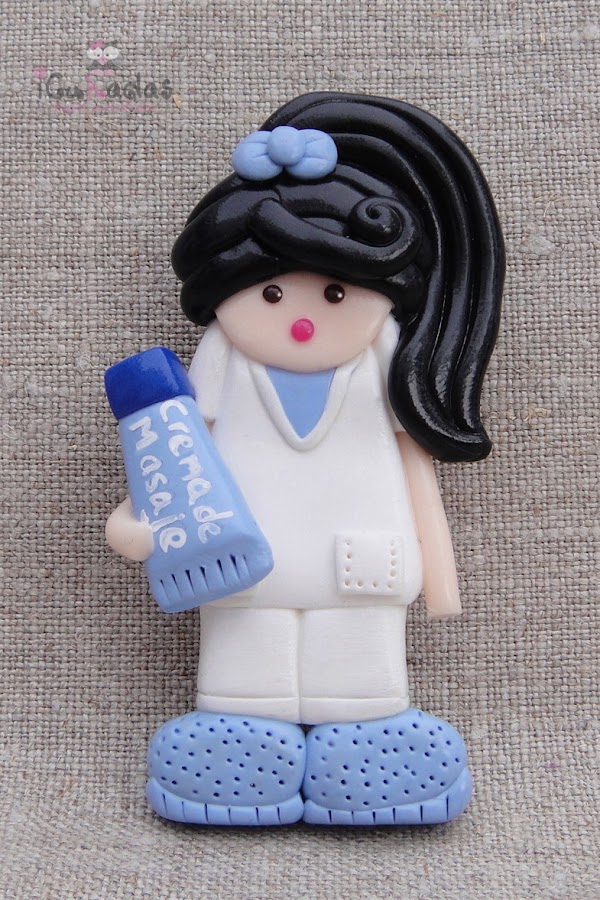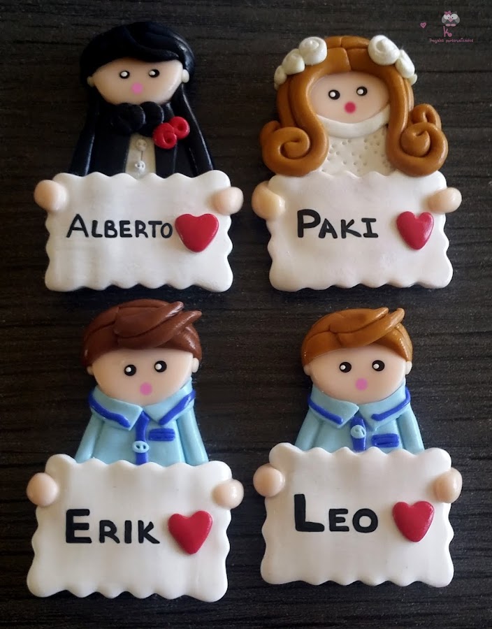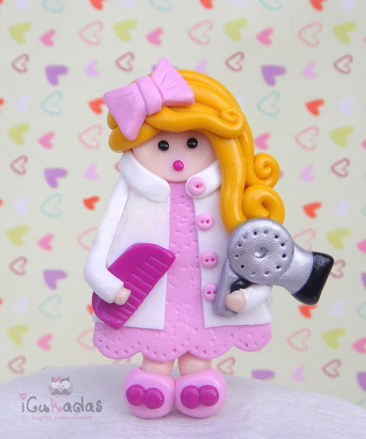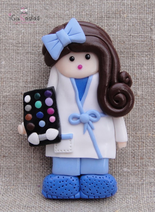 Pueden hacerse como broches o como imanes, con el color de pelo que quieras, el color de la ropa, si llevan uniforme, o algún pequeño objeto que los caracterice, para eso son personalizados y desde luego son únicos.