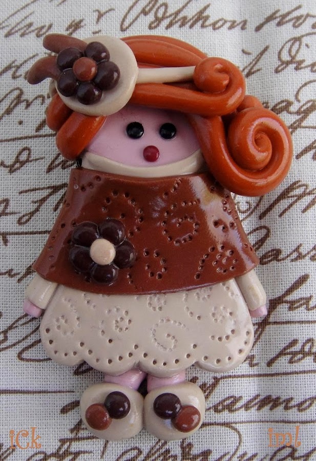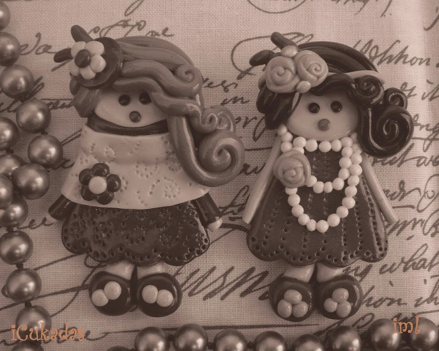Son broches, de fimo, aunque hice una también de un tamaño mucho mayor para poner en un marco y colgarla en la pared.