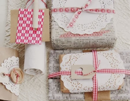 Para introducir la blonda en navidad basta con darle toques de color rojo con alguna cinta o cordel , hacer algún estampado con un cuño navideño o añadir algún elemento como un arbolito o alguna estrellita. Os aseguro que vuestros regalitos lucirán ideales.