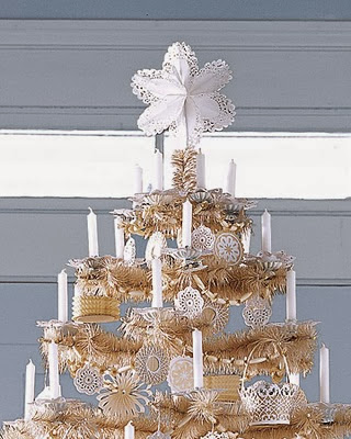 Quedará un árbol muy bonito y delicado. Aunque personalmente éste con las velas a mi no me gusta mucho, la idea de la blonda sí me la quedo y creo que podría quedar genial con otros elementos. ¿ Qué os parece a vosotros ?