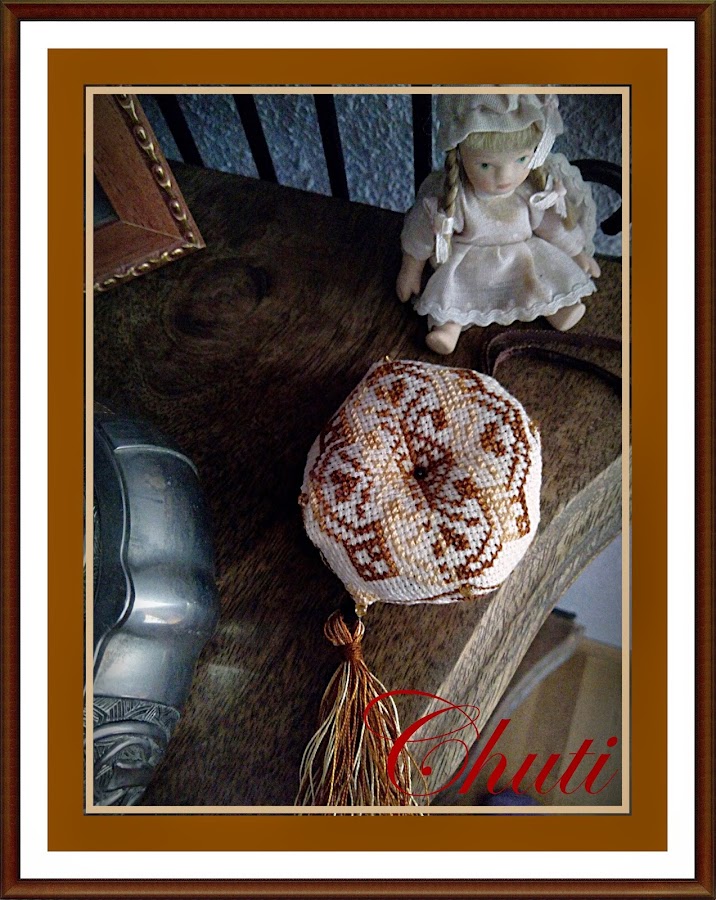 El segundo regalo, un biscornu, no lo tuve que pensar porque ella misma me lo pidió cuando vió el que me hice y que visteis en la entrada anterior