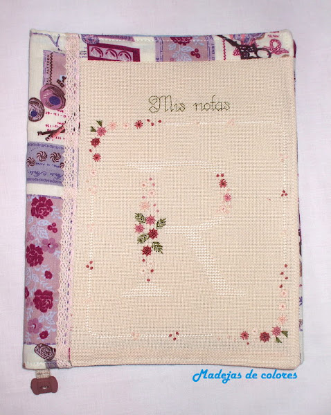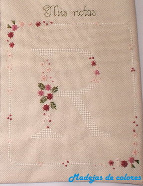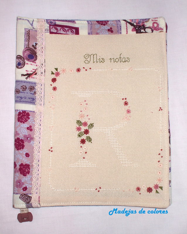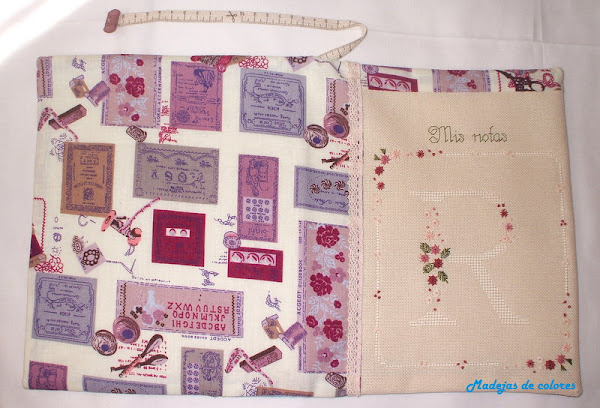 Aquí más de cerca el bordado y sobre de él, la frase "Mis notas", ya que su cuaderno contiene, todas sus anotaciones de costura.