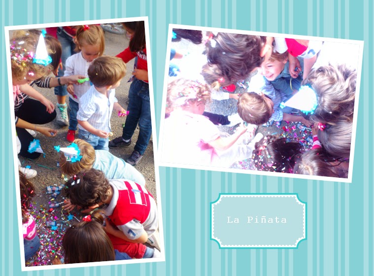 Y por supuesto la piñata... el momento más esperado por los niños, o al menos los mios, que no conciben un cumpleaños sin ella. Una explosión de alegría mezclada con caramelos, pequeños regalos y confeti.