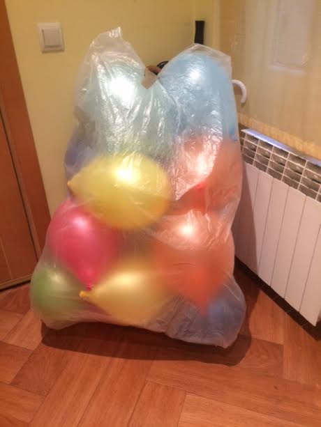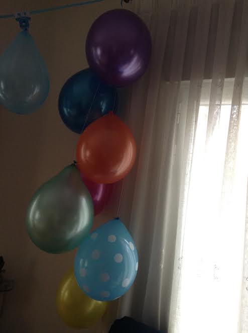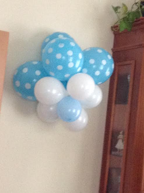 Con tanta fiesta se me olvido sacar fotos de todo,le pusimos una casacada de globos con el numero dos en la puerta de la entrada para que cuando llegara empezara la sorpresa y toda la entrada de la casa llena de globos por el suelo para que fuera apartándolos al entrar...que creéis...se quedo parado en la puerta y no se movía...esta en shok mirando los globos y ya por fin le abrimos camino para que se acercara.