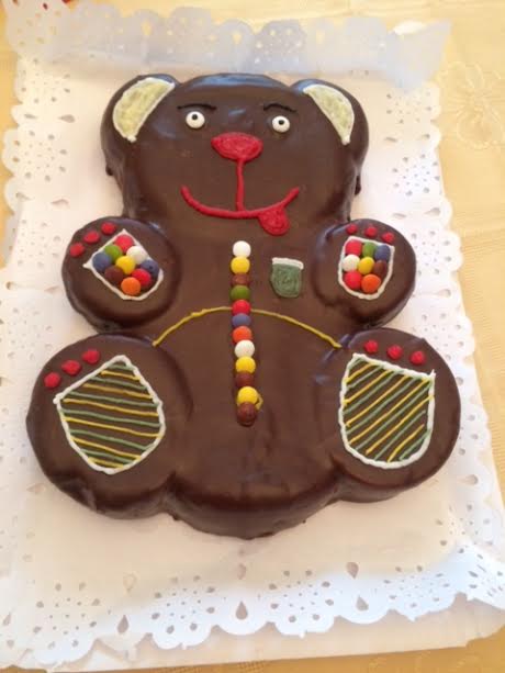 Os enseño la preciosa tarta que le hizo mi sobrina Andrea,que ademas de fisioterapeuta es una gran repostera...estaba entusiasmado,no quería que nos la comiéramos...era su tarta