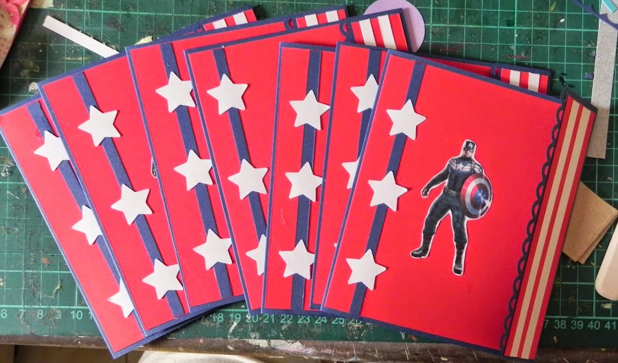 En el mes de Abril realice este pedido especial, invitaciones y Banners del motivo Capitán América.