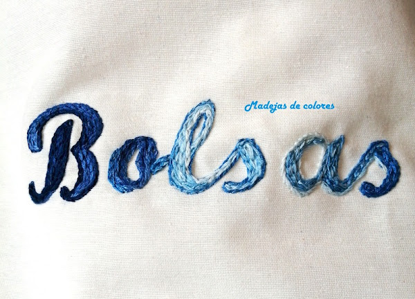 También le hice un guarda-bolsas, con tela de cuadros azules y "Bolsas" bordada a punto cadeneta con madeja matizada.