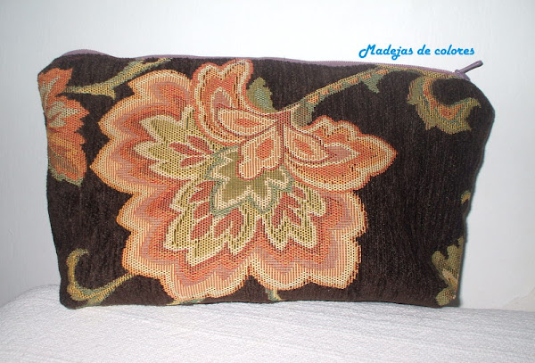 También le hice un estuche para los pinceles que me había pedido. Escogí una bonita tela con flores y fondo chocolate, para que fuera más cubridora.