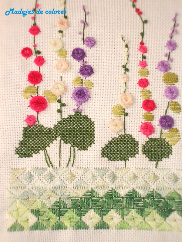 Una imagen más de cerca, donde se puede apreciar los diferentes puntos y el verde matizado que empleé para la base y hojas.