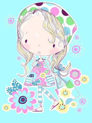 Muy coqueta con sus coletas con lazos, su flor en el bajo del vestido.Miren su boquita bordada en forma de corazón, haciendo juego con el vestido. Pero también es muy tímida, de ahí sus grandes coloretes.