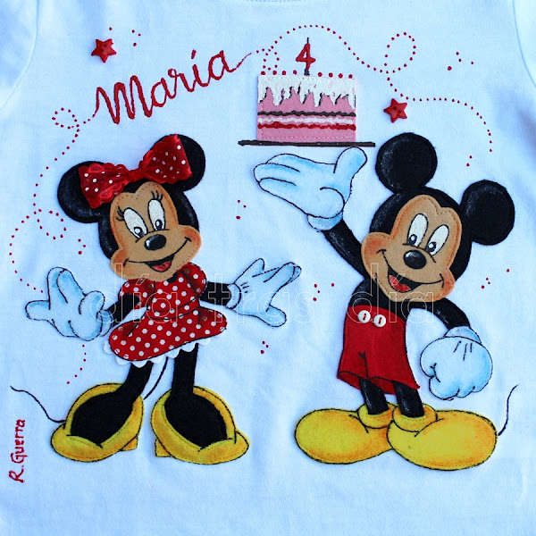 Cristina, su mami, se puso en contacto conmigo hace algunas semanas para decirme que le gustaría que preparara una camiseta con Mickey y Minnie como protagonistas para celebrar el cumpleaños de su peque.