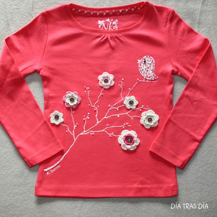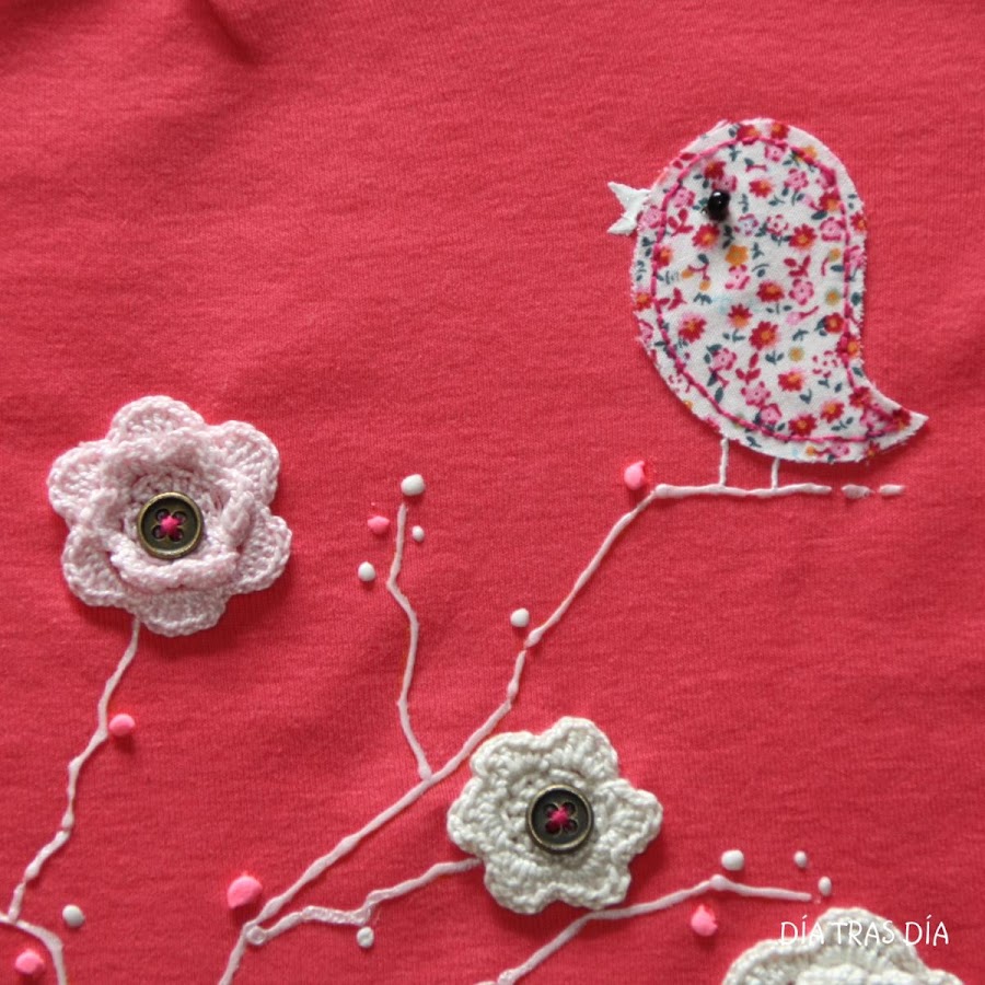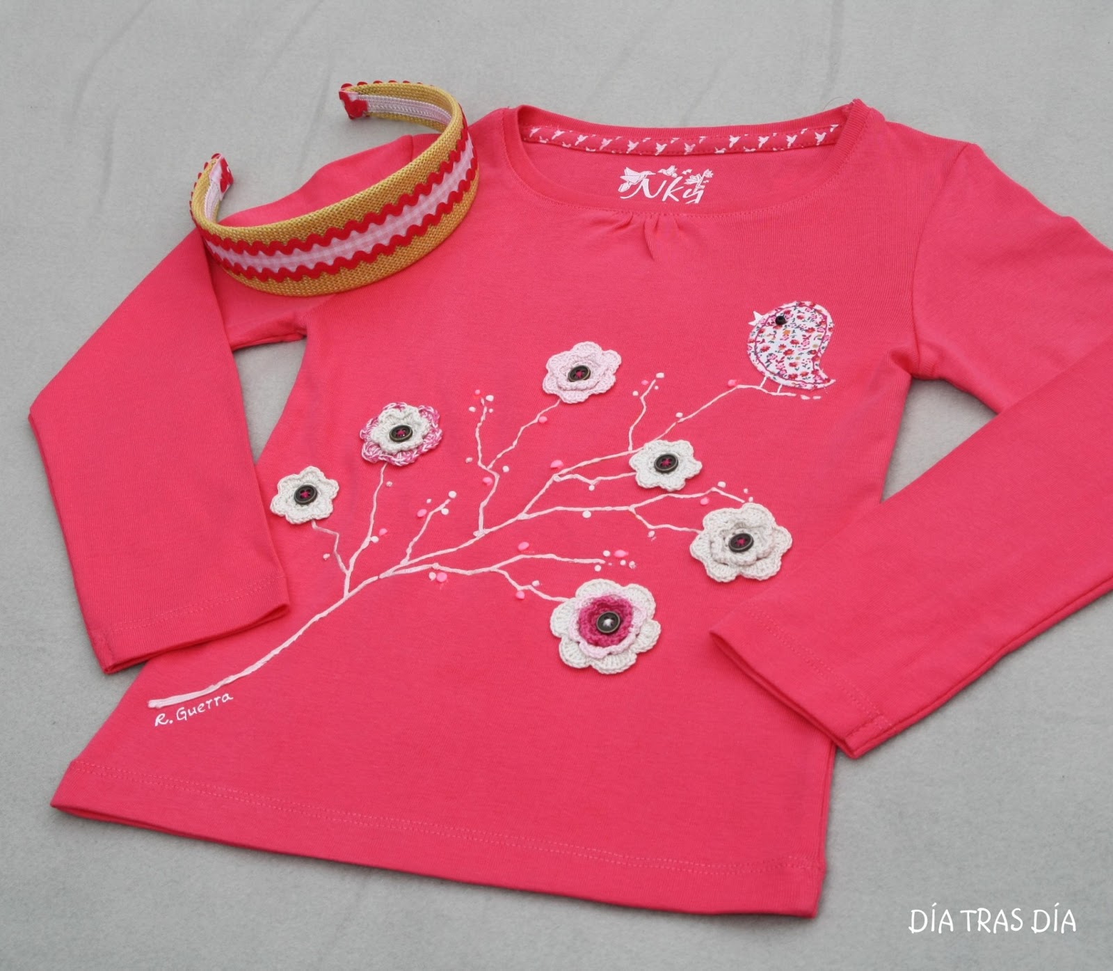 Pues en esta ocasión, lo he hecho sobre una camiseta de color fucsia, que queda muy alegre y este ha sido el resultado: