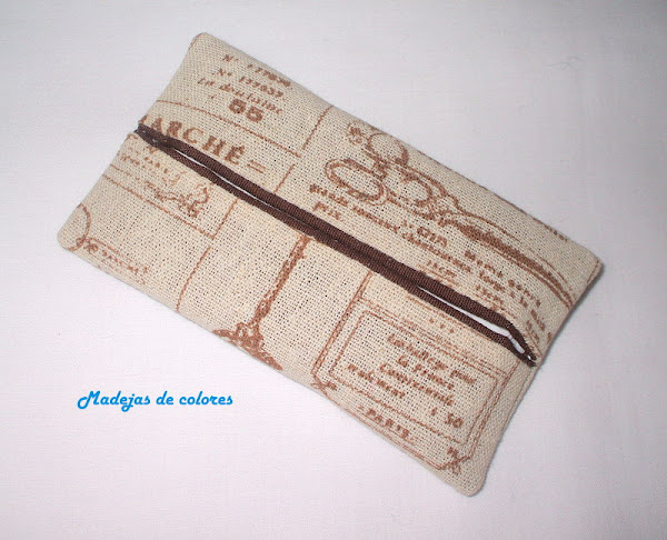 También le hice un guarda pañuelos con un lino con motivos de costura y el forro en marrón que asoma, haciendo las veces de vivo.
