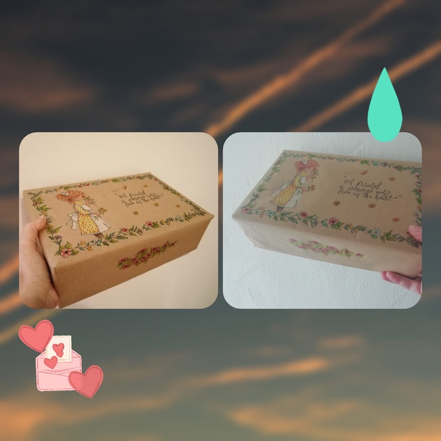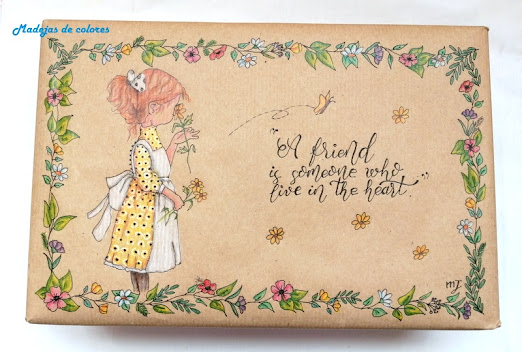 Todo ello iba metido en una caja forrada y decorada, de la cual estoy enamorada, me gusta más que la que hice para mi. A ver que opináis.