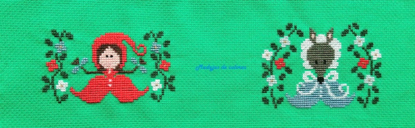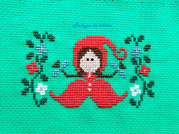 Hace unos meses ella había comprado unas telas con Caperucita Roja y en ese momento le comenté, que las veía geniales para hacer un estuche vertical y le gustó la idea. Cuando estaba pensando que más hacerle, pensé que podía combinarse dicha tela con punto de cruz. Le pregunté que le parecía la idea y me dio carta blanca.