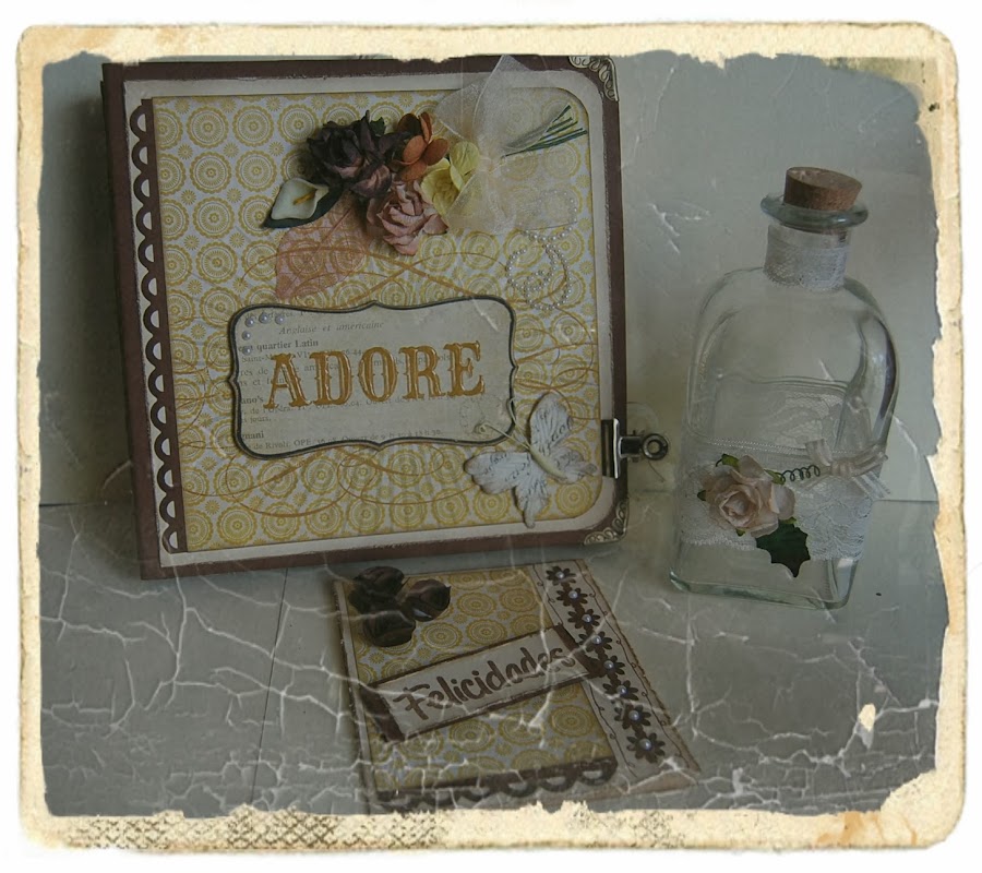 Partiendo de un cartón de proyectos, forrado con cartulina marrón chocolate de fondo, empecé las tapas y las páginas interiores van pegadas en el centro una dentro de otra... Y como una imagen vale más que mil palabras, aquí están las fotos de las portadas y las páginas interiores...