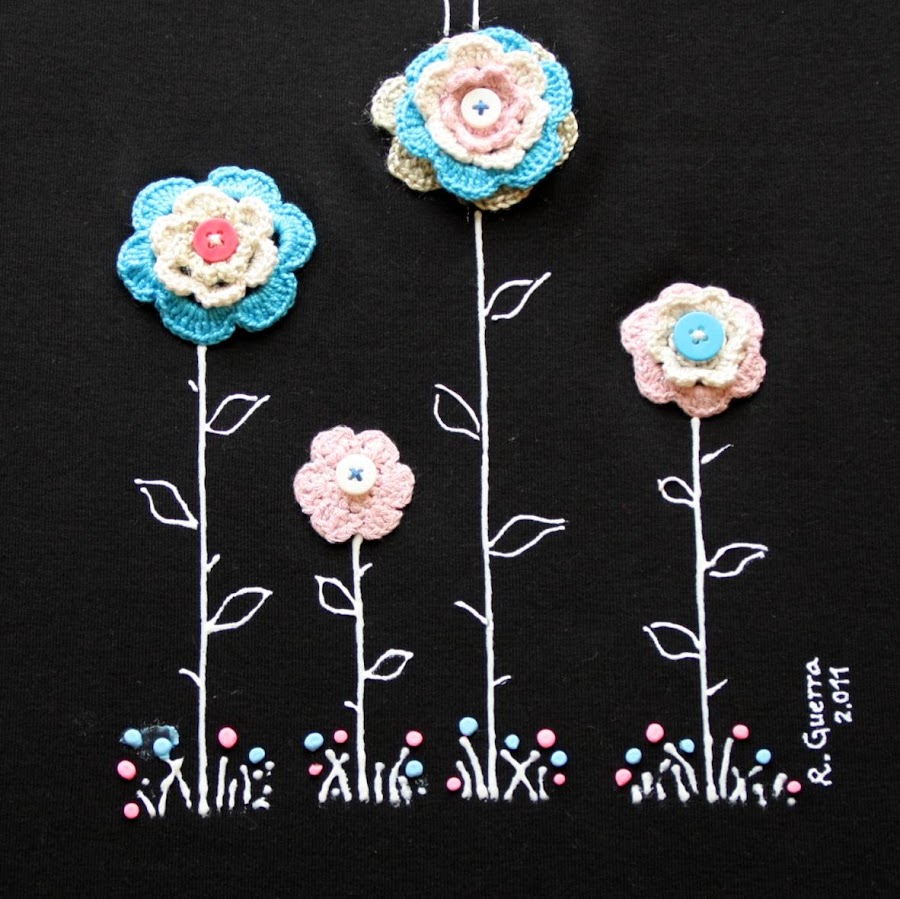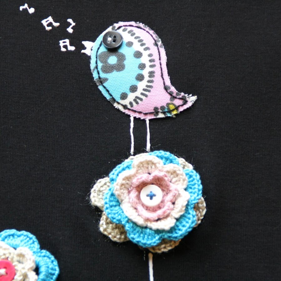 Esta vez me he decidido por el diseño "Observando desde las flores", que ya fue el que elegí para regalar a Nora (su pequeña pulguita, como ella la llama) para su primer cumpleaños. ¿La recordáis? Por si acaso, aquí la tenéis.