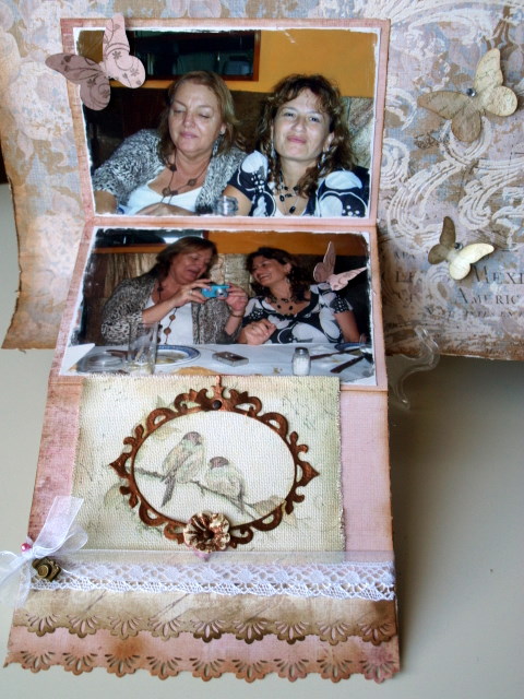La idea era hacer cada una una pagina y luego encuadernarlas todas juntas, en un álbum...aunque ha sido tan multitudinario que hubo que encuadernar dos álbums!!!! Unas láminas preciosas, cada una con un estilo dando una parte de nosotras mismas, un recuerdo que al final...la hizo llorar de emoción!!!!!!