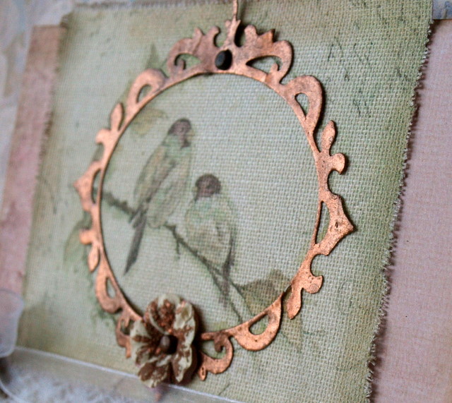 Los detalles... Una imagen vintage impresa en lienzo, y rodeada de un marco embossado en cobre para imitar el metal antiguo... y tinta para envejecer...