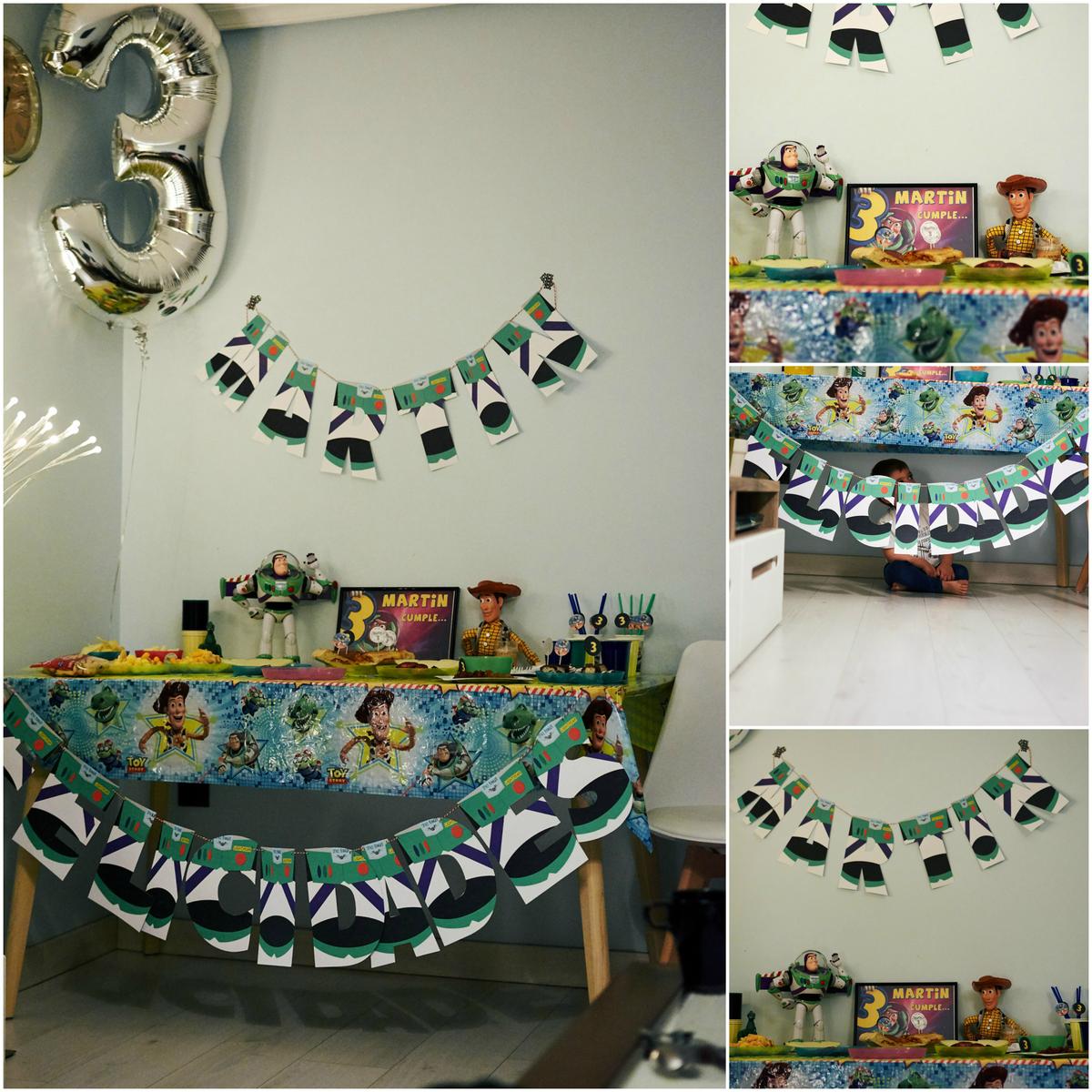 Pero este año….ay este año!!!! Mr. M lo quiere ni mas ni menos de Buzz Lightyear, ahora que no hay nada de Toy Story jajajaja pues sí ahora…. así que saque a relucir mi imaginación y buscar sin parar cosas decorativas, incluso la tarta me he venido arriba y se la hice yo también…jajajaja