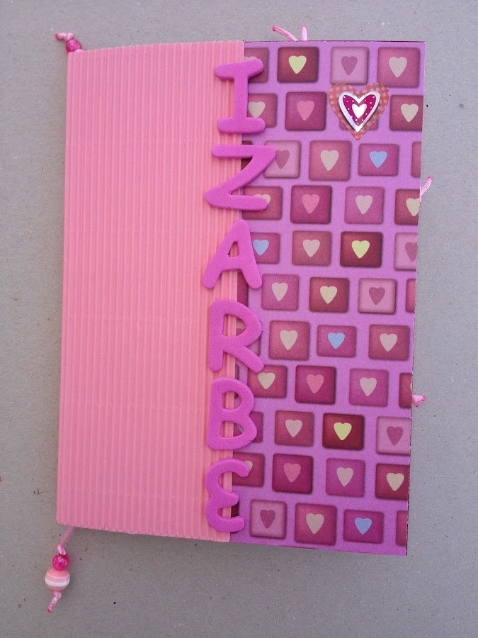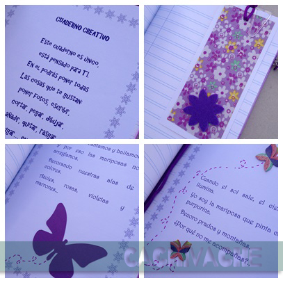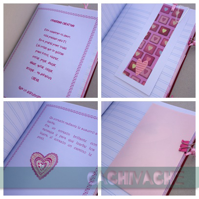 Se trata de unos cuadernos creativos. Para quien no sepáis lo que es os lo explico. Es una combinación entre diario, libro de fotos, bloc de dibujos, libreta de notas.... En la que van apareciendo entre sus hojas algún detalle relacionado con el tema escogido, pues como veis, son totalmente personalizados y con un diseño especial para cada protagonista.... no solo para niñ@s, como este caso.... ya que para ser creativo no existe limite de edad... En él puedes además de escribir, dibujar, pegar, rasgar, arrugar... en fin dar rienda suelta a tu imaginación....