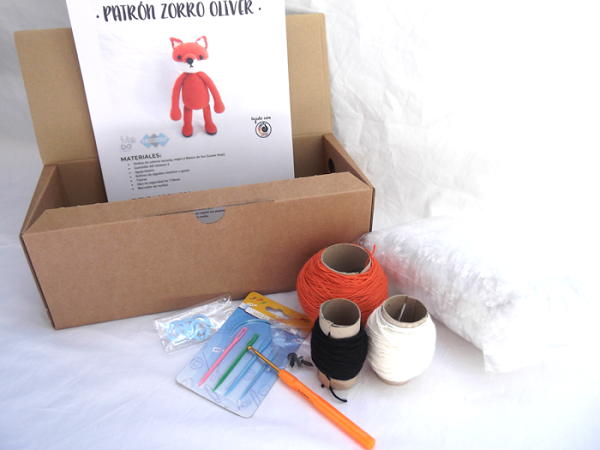 Ya solo queda que veas mi aportación. He decidido crear un kit exclusivo con el que podrás tejer a Oliver, el zorrito de mi primer patrón original ;)