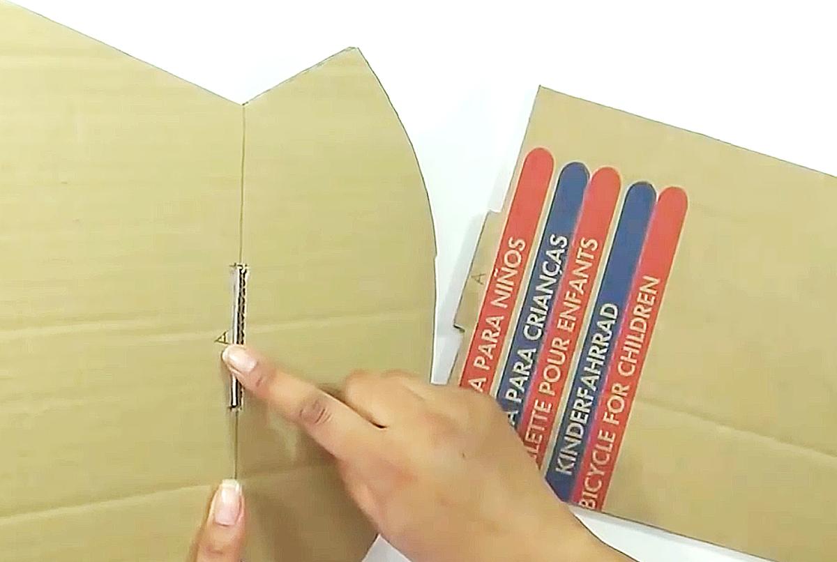 Alinea la pieza de 20 x 30 con la línea y traza dos marcas en el centro, y corta; en un pieza retira la parte central y en la otra pieza retira los laterales, de manera que encajen una con otra.