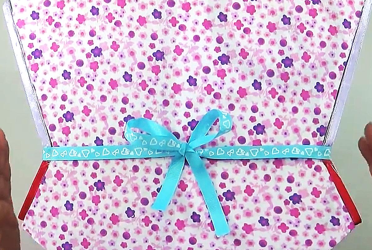 Después pega los laterales, tanto de arriba como de abajo y cubre la unión con cinta, como sugerencia, deja un poco de cinta para hacer un lazo.