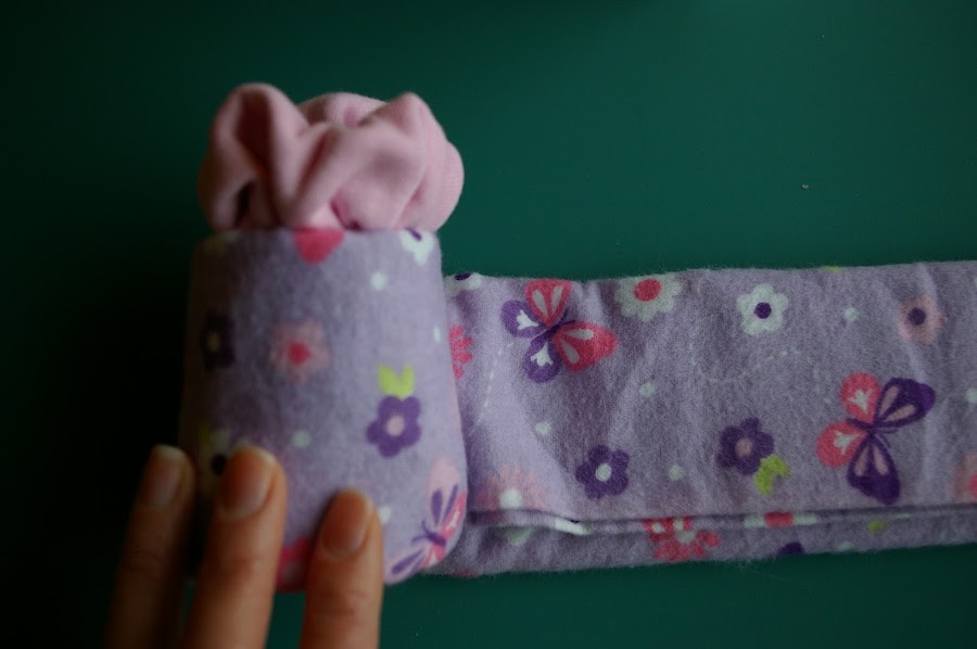 1. Doblamos la mantita hasta que nos quede una anchura de unos 3 centímetros de alto.