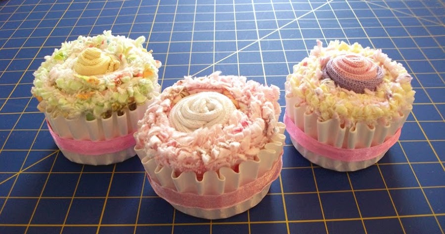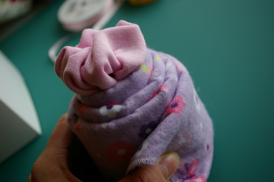 Estas dos fotos corresponden al blog de cuteasafox, ella utilizó calcetines en lugar de bodys y la manta llevaba flecos en el la parte inferior con lo que hace ese efecto en la cupcake. Pasaros a ver su tutorial ya que también lo explica genial.