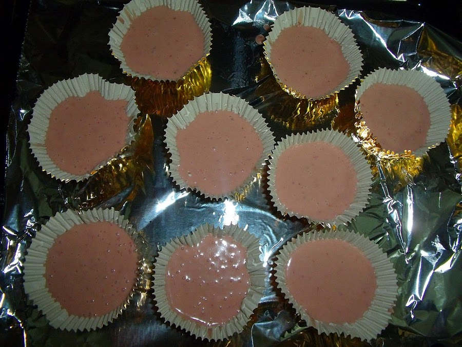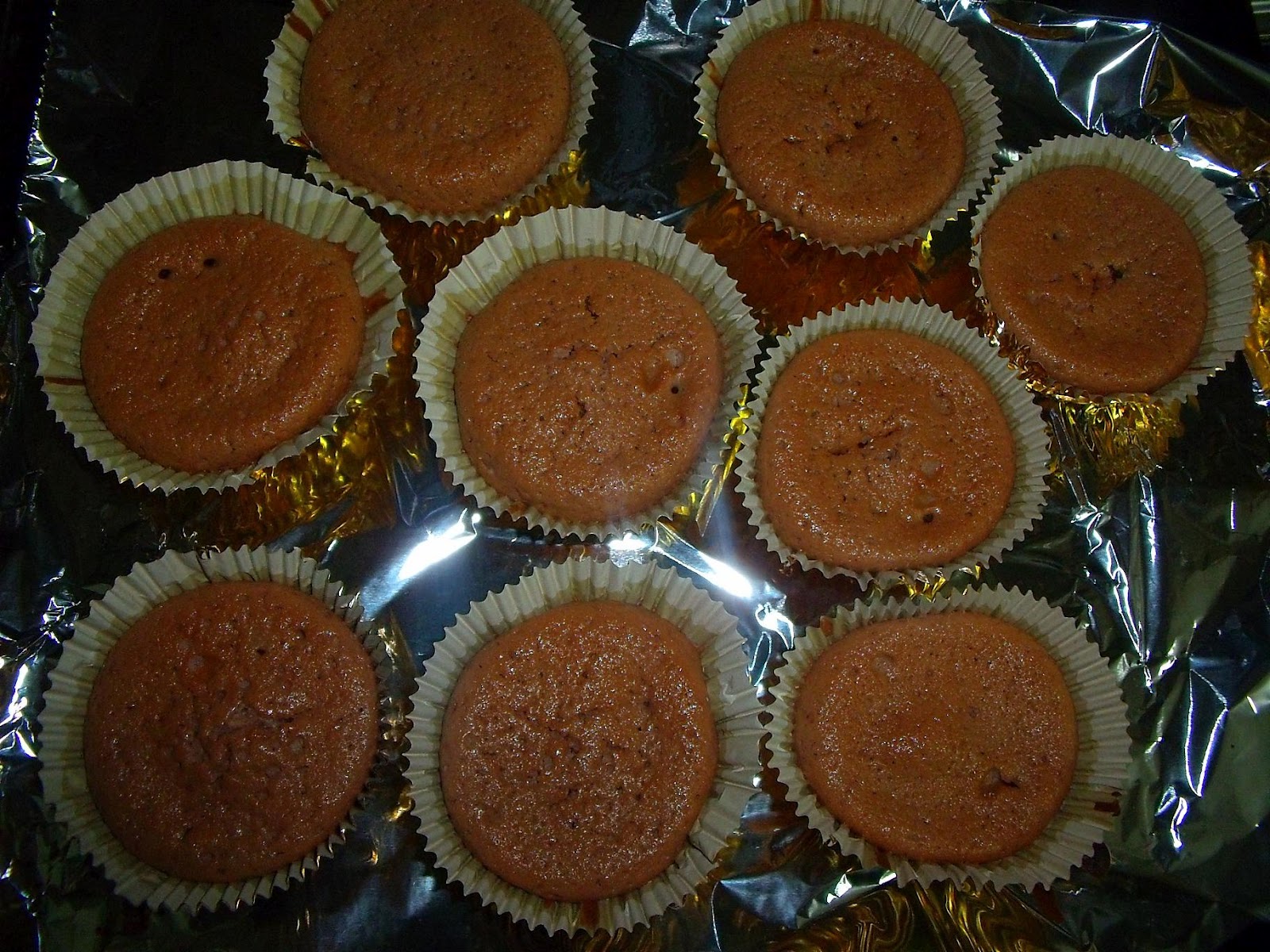 A continuación llenamos los moldes unos dos tercios porque luego sube. Este es el aspecto que tenían antes de meterlos en el horno.