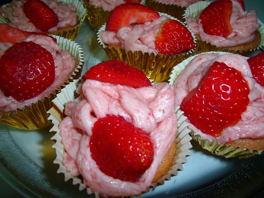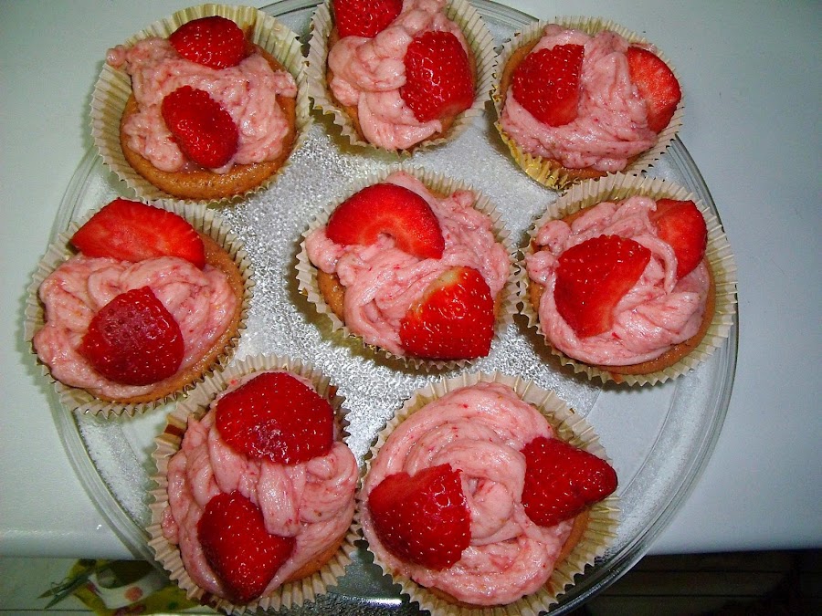 Elegí la receta de los cupcakes de fresa porque me pareció mas sencilla y tenía los ingredientes en casa. Yo he adaptado la receta para que me saliera menos cantidad. Así es como yo la he hecho:
