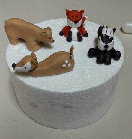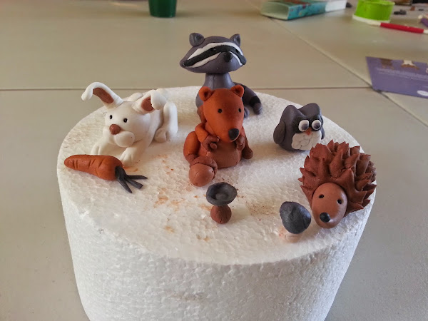 Ok! y ahora para los animalitos modelados, los animalitos del bosque los llevé en un curso de dos clases, están hechos mayormente con pasta de chocolate moldeable y son super fáciles de hacer, el unicornio fue mi intento de unicornio después de que me quedara un poco de pasta australiana medio manchada y algunos pedacitos de pasta australiana coloreda.