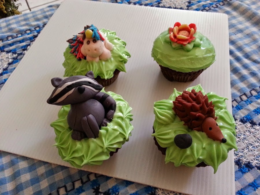 oso salvaje, zorro, zorrillo, venado Conejo y zanahoria, mapache, ardilla y nuez, búho, puercoespín y hongos La idea del unicornio la saqué de un video de you tube de MyCupcakeAddiction en youtube, ella hizo unos super hermosos y bueno yo intenté, la verdad que aún no tengo marcadores comestibles y por eso los ojos son de pasta medio exageradamente grandes para su tamaño, pero me encantan los colores! <3 br="">3>