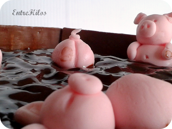 En un principio iba a hacer la tarta de cerditos, ¿La recodáis? (Para el que no se acuerde puede ir AQUI), todita de chocolate, y con esos cerditos rositas tan monos, con esos "culetes flotando" :-)