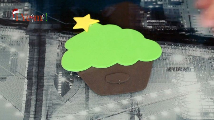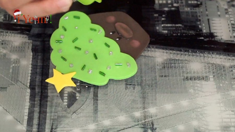 Para el árbol solo pega la nariz y la estrella en la punta de la espuma y repite los pasos anteriores para la decoracion