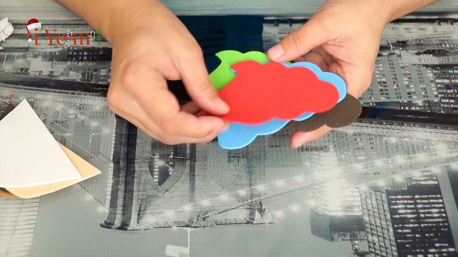 Dejamos secar completamente, recorta pequeños cuadrados del color de la espuma estos nos servirán para sujetar la cinta o el hilo que nos seriar para colgarlos.