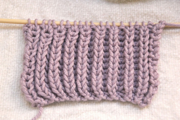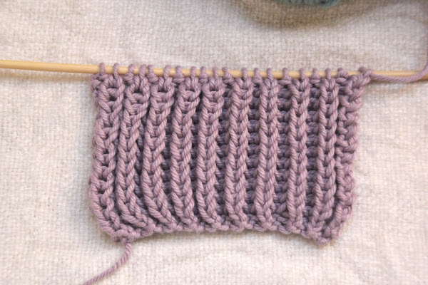 Tras montar los puntos en la aguja, las dos primeras vueltas yo las realizo alternando puntos del derecho y punto del revés. Como tejemos el punto patente ó elástico 1x1. Luego seguiremos tejiendo punto de derecho seguido de un punto de revés, pero los puntos del derecho los vamos a realizar en el punto bajo que hay en la aguja izquierda.
