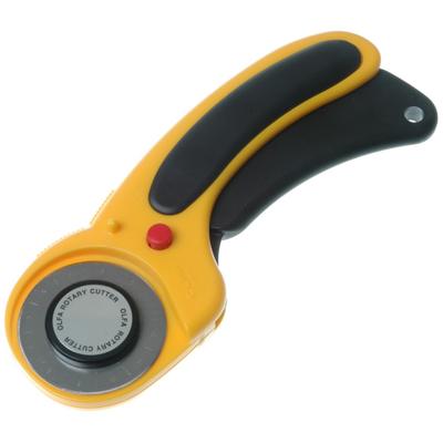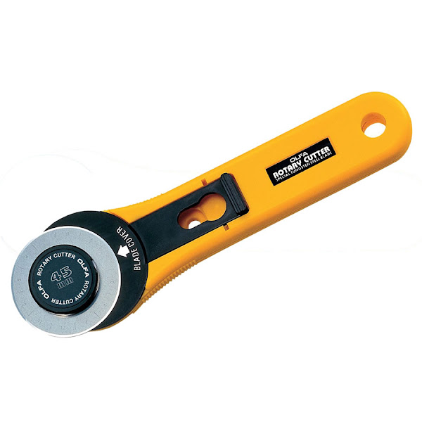 Hay varios tamaños, con disco de 60 mm, de 45mm, de 28mm y 18mm, el más cómodo y conocido es el de 45mm, los más pequeños se suelen reservar para cortar telas de medidas muy pequeñas o bien para que gire mejor al cortar curvas. En cuanto a los mangos, hay muchos tipos diferentes, todos tienen en común que son ergonómicos y deben tener un cierre de seguridad que proteja la hoja. Muuuuucho cuidado con los dedos!!! Estos cutters están muy afilados y si no tienes un poco de cuidado puedes hacerte mucho daño...
