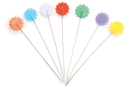También los tienes con formas divertidas, como pajaritos, botones, etc, pero su función es la misma que los básicos, sólo que un poco más "chic". Conviene que sepas que tienes disponibles otro tipo de alfileres, de cabeza de cristal, y que permiten que puedas planchar sobre ellos sin preocuparte de que se derrita el plástico, como pasaría con los anteriores.