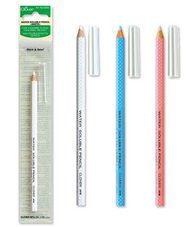 Tienes estas mismas tizas en formato especial para patchwork, que van muy bien porque traen minas de varios colores que puedes cambiar según la tela que quieras marcar. Vienen en un paquete con el portatiza, un paquete de tizas blancas y otro paquete de tizas de colores, y luego se pueden comprar por separado.