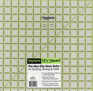 Las reglas de patchwork son más gruesas que las reglas normales, y vienen impresas con medidas y líneas, igual que las bases de corte. Son de un plástico rígido, para que nos entendamos, y vienen en muchíiiiisimas medidas.