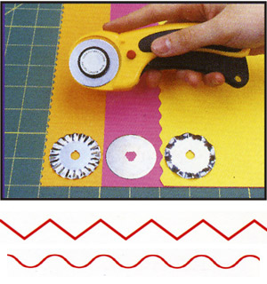 Además de las hojas normales, también tienes hojas con formas, zig-zag o curvas, que reemplazan el uso de las tijeras en zig zag de toda la vida, y hacen el corte de la tela de manera que no se deshilacha.