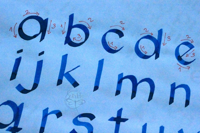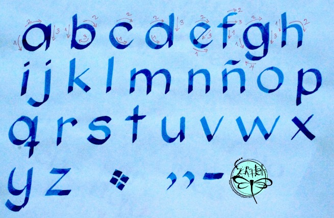 Aqui te muestro cómo yo hago mis letras, en cuantos pasos realizo cada una... con qué fin? ganas de complicarme la vida? no! es que hay que buscar la forma para que la plumilla deslice lo menos forzada posible.