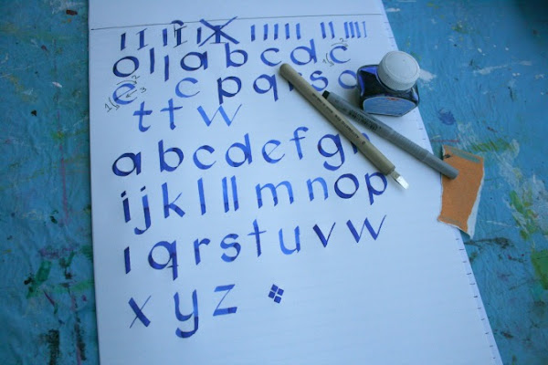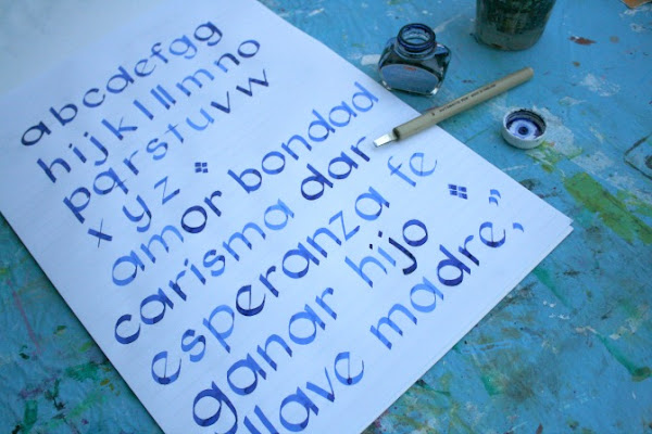 y luego frases, y luego diferentes tamaños de letra y plumilla, otros colores, renglones rectos, en olas... en fin, la idea es divertirnos!