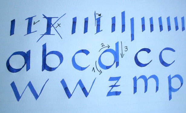 Tus bolas son realmente "bolas"? son unos círculos aceptables? porque perfectos no es necesario que los haya, y tus palos? tienen ese comienzo y esa terminación requerida? Si? bravo!! entonces continuemos:Con la letra más fácil!