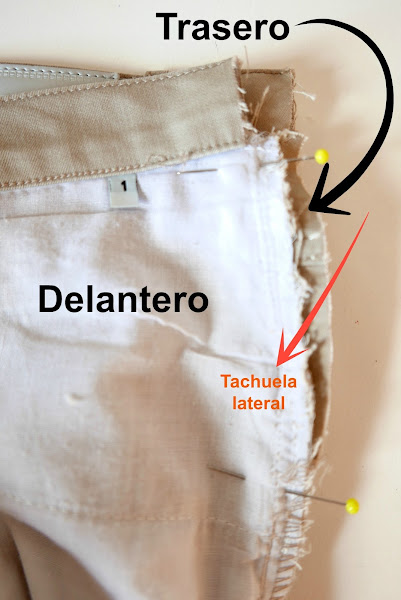 Antes de empezar, uno de los principales problemas que podemos encontrar, es que haya tachuelas en los laterales, que se colocan justo en la unión entre el comienzo del bolsillo y la costura lateral.