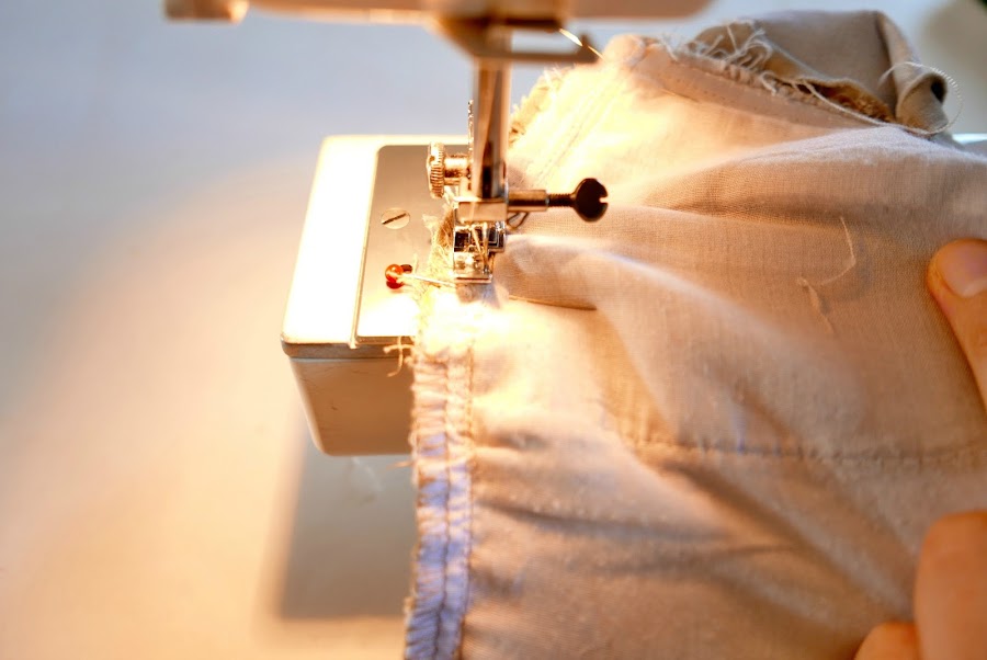 Pasamos a coser los laterales, primero la costura de la cintura: