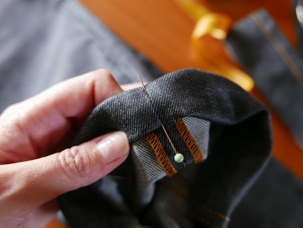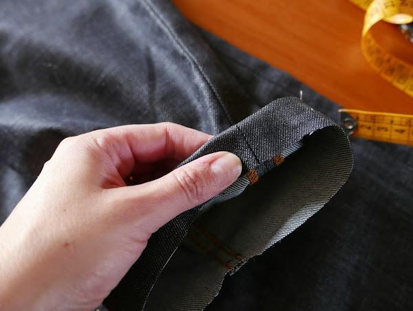 Hay que elegir bien el hilo. A poder ser que sea lo más parecido posible al hilo con el que está cosido el bajo original del pantalón: